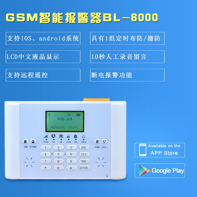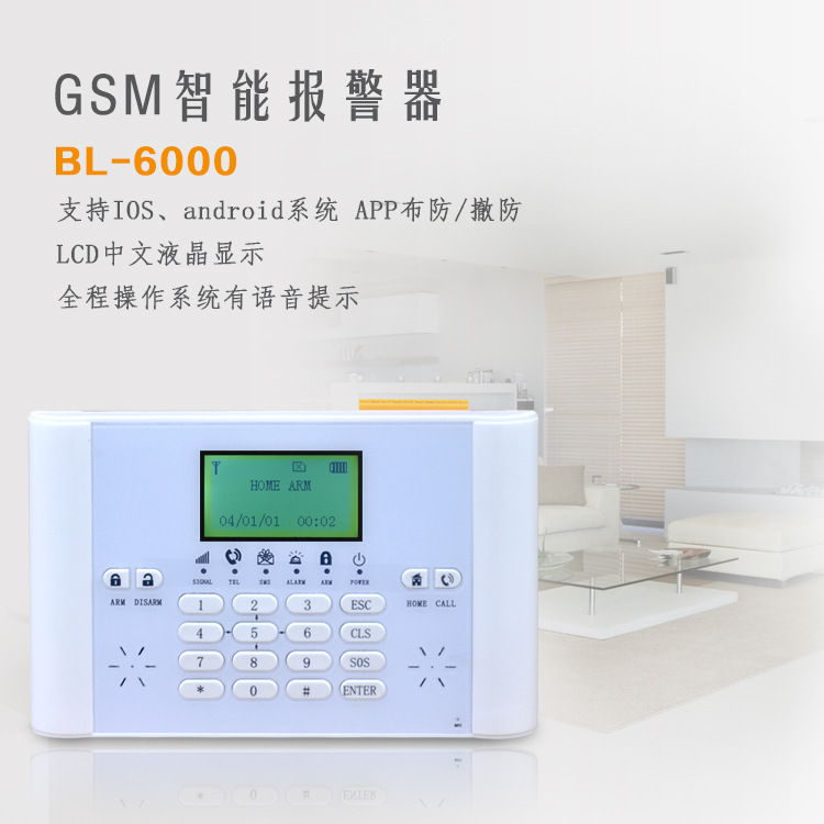 BL6000G全面兼容现市面上的GSM卡加入防区独立布撤防功能,外接六路有线防区,断电来电短信报警功能,在家布防模式功能,定时布撤防功能等。对于使用配件不多的客户,这是非常合适的选择,用户可以根据防盗器的安装使用场所灵活添加门磁窗磁感应器、烟雾感应器、燃气感应器、红外线人体探测器、遥控器等等。