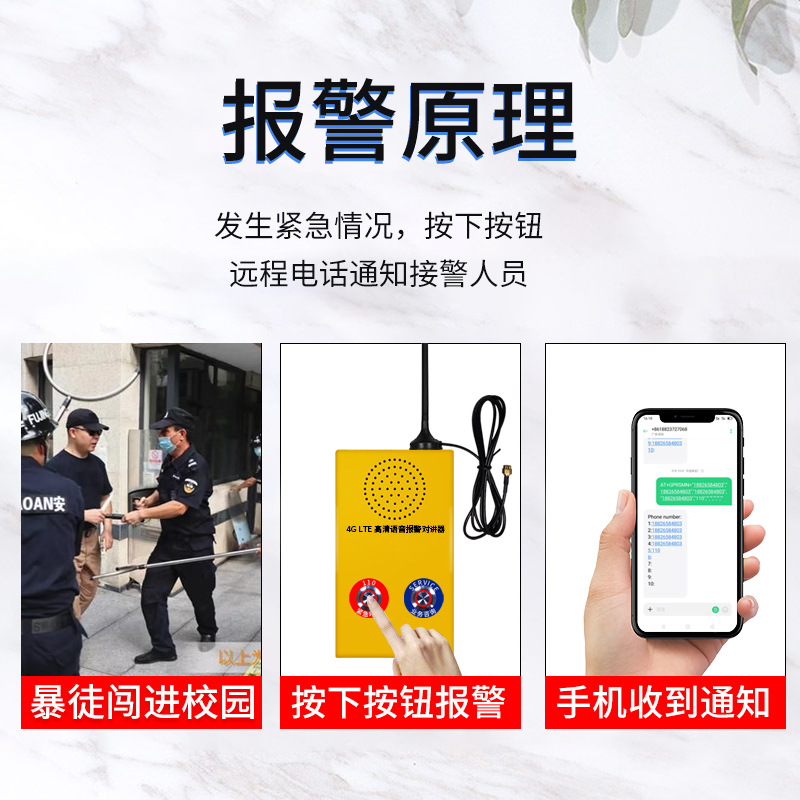 报警原理:暴徒闯进校园-按下报警按钮-手机平台通知