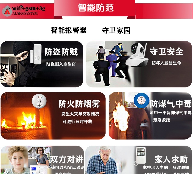 >WIFI/GSM/3G/GPRS联网报警器,支持APP推送、短信、语音监听,中心联网等多通道报警方式,确保报警性能稳定可靠。