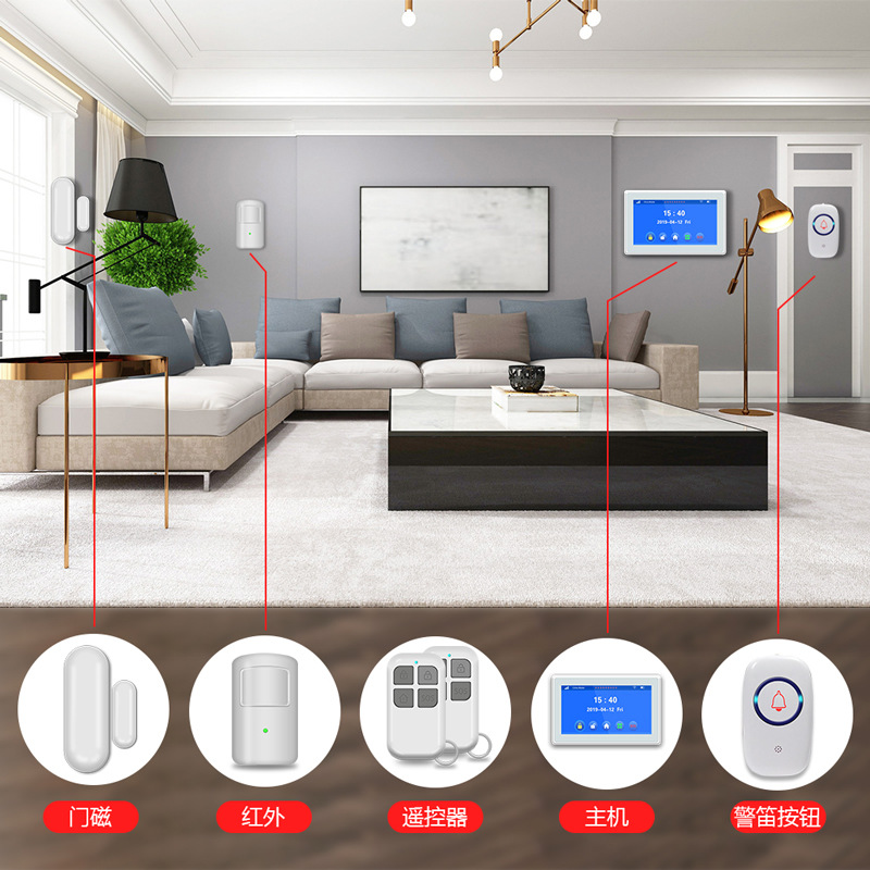 This 7-inch TFT color screen intelligent wireless long-distance voice alarm system G7 has a powerful CPU main control and a full touch screen operation menu. High-end GSM / WIFI dual network alarm with stable and reliable performance. The host wirelessly connects infrared, door sensor, smoke detector, gas detector, emergency button and other accessories. When the alarm is received, the alarm zone will be displayed on the color screen, and the site will sound an alarm. At the same time, it will send a text message and call the user's preset phone to notify the user. Can be widely used in homes, factories, schools, shops, convenience stores, finance rooms, villas, residential areas and other places that need protection, in order to fully protect the safety of people and property.