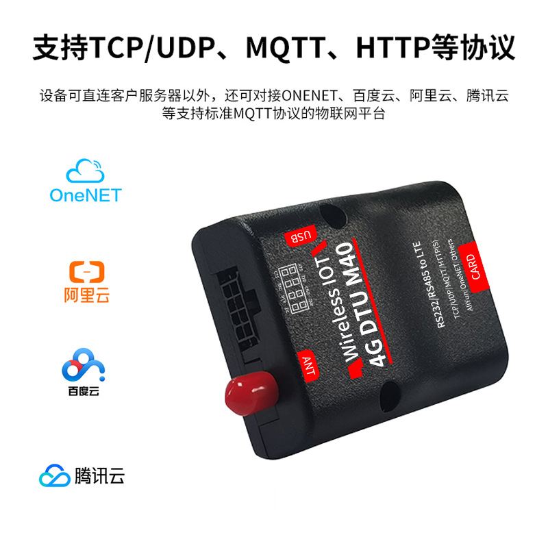 设备可直连客户服务器以外,还可对接ONENET、百度云、阿里云、腾讯云