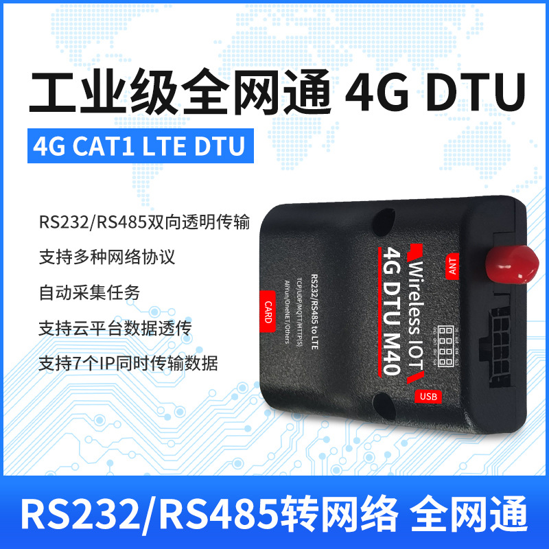 工业级CAT1 4G DTU模块RS485/232数据TCP/UDP/透传物联网控制设备