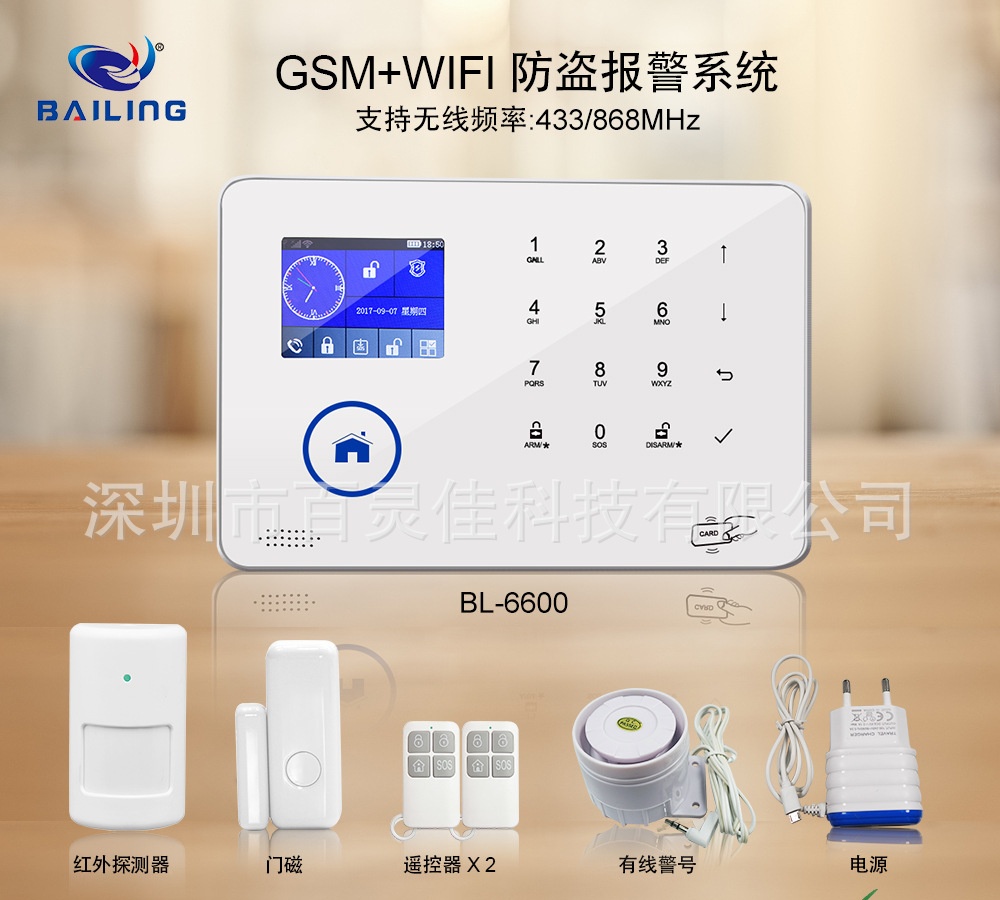 智能家居WiFi+GSM无线防盗报警器 安全防护报警管家 视频监控系统