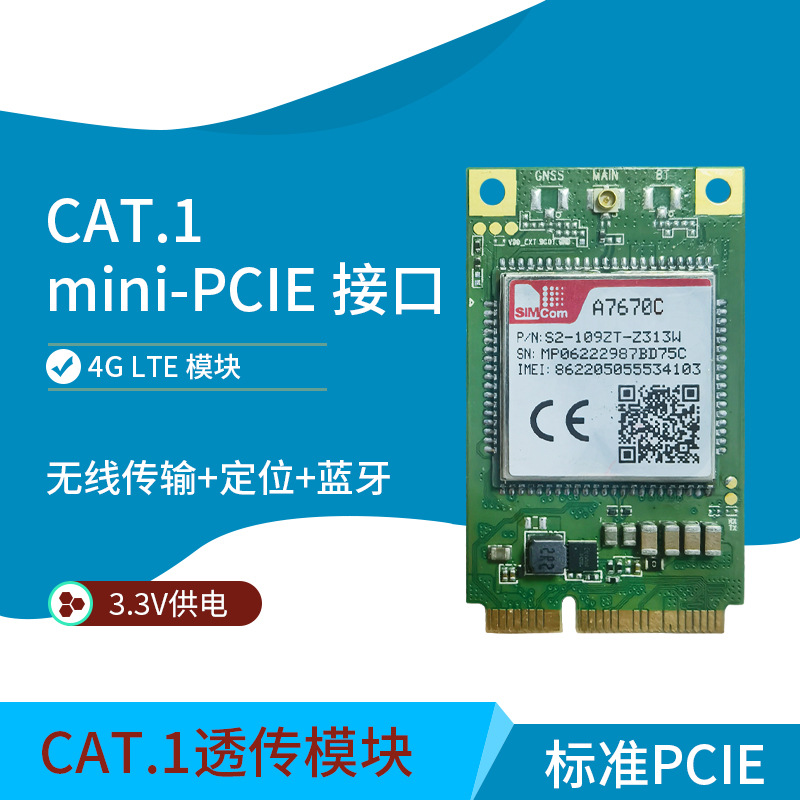 4G mini PCIE 工业级物联网模块CAT.1芯讯通A7670C GPS/BLE全网通