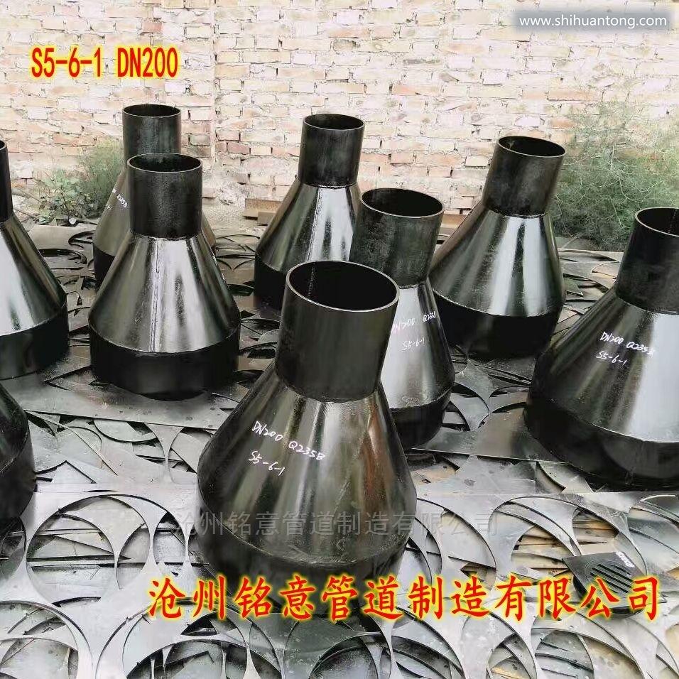 排水漏斗的介绍: 1.漏斗以材料A235Q卷焊而成。2.采用E4303,优质锥形排水漏斗,牌号J422焊条焊接。3.漏斗内外各刷防锈漆两遍,外层防腐由设计决定,L﹨H的数值可根据需要高度决定。5.为防止杂物,可选用过滤网板。