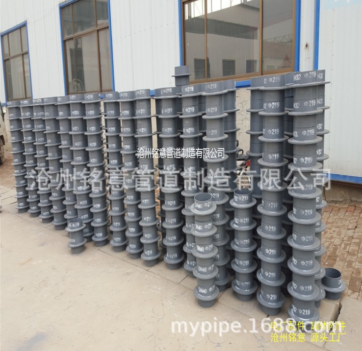 柔性防水套管是适用于管道穿过墙壁之处受有振动或有严密防水要求的构筑物的五金管件,一般生产企业是根据建筑研究院研制设计的S312/02S404标准图集制造的。柔性防水套管穿墙处之墙壁,如遇非混凝土时应改用混凝土墙壁,而且将套管一次凝固于墙内;柔性防水套管施广泛用于建筑、化工、钢铁、自来水、污水处理等单位。