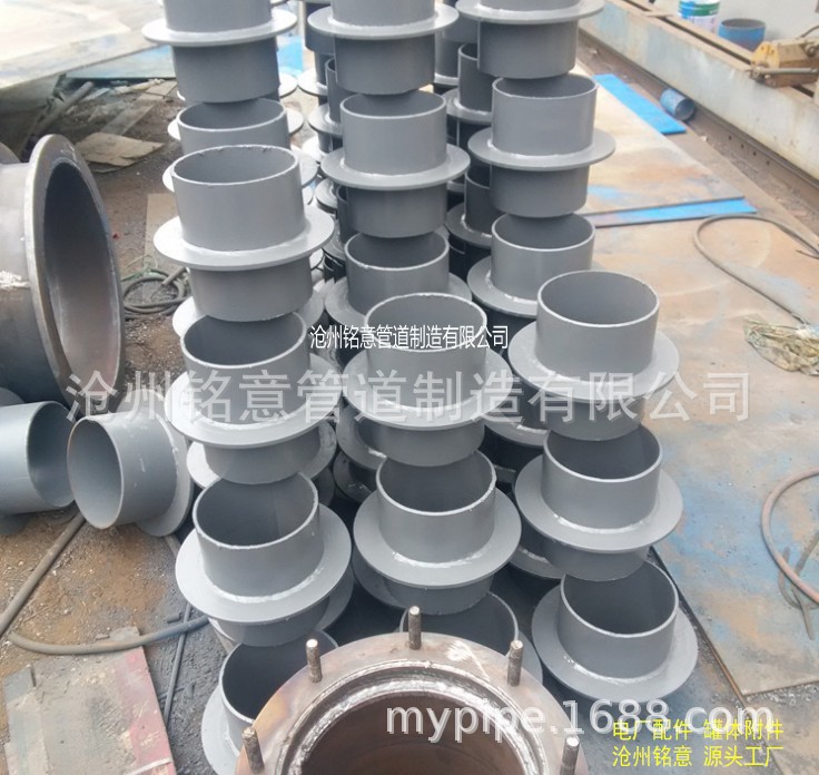 根据与标准图集可以分为:国标和非标。国标型防水套管是指完全按照相关的02S404或S312标准图集选材和生产,对法兰厚度、翼环厚度、管径与厚度都有严格的要求。非标则是在外形和大概结构符合标准图集的情况下,选材时对法兰厚度、翼环厚度、管径与厚度认为放宽要求,严格来说,这些是不合格的产品,当然,一定程度内的放宽标准不至于影响使用,但过分的放宽标准则回影响到使用性能。