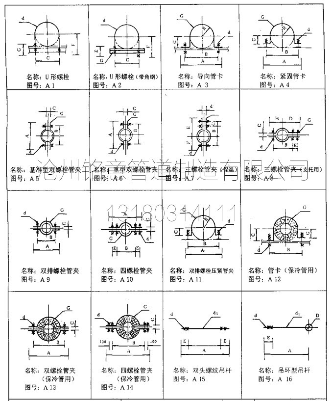 管夹 吊耳 图纸 管托图号 材质型号