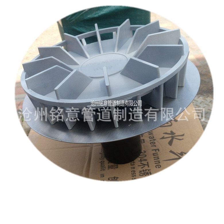 标准型的雨水斗,它是由雨水斗底座,碟片,格栅顶盖组成。另外根据需要可提供通用型的绝缘底座,固定件,法兰片,焊接片,防火保护帽,微型加热电圈等配件。