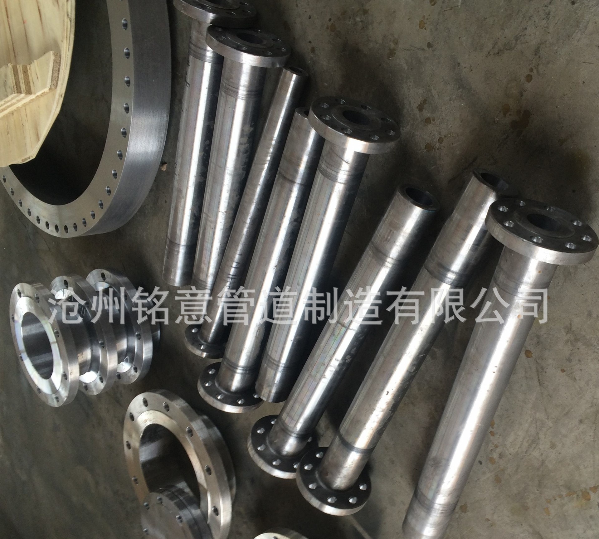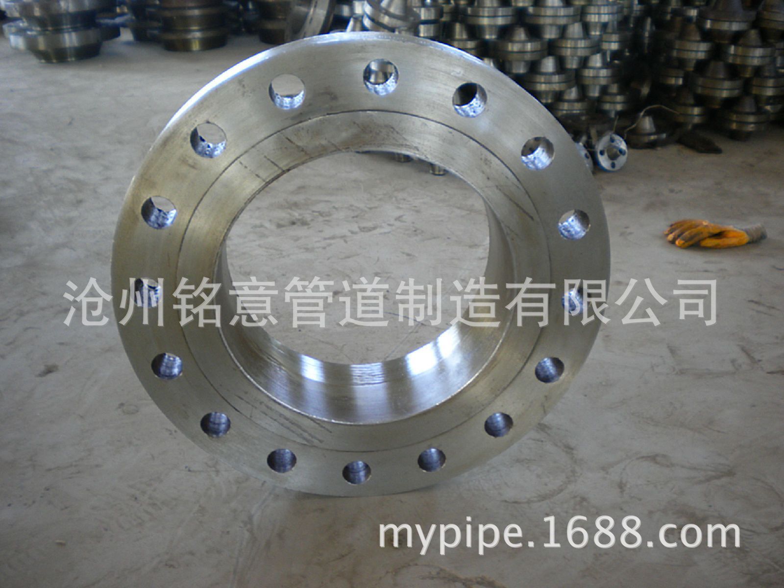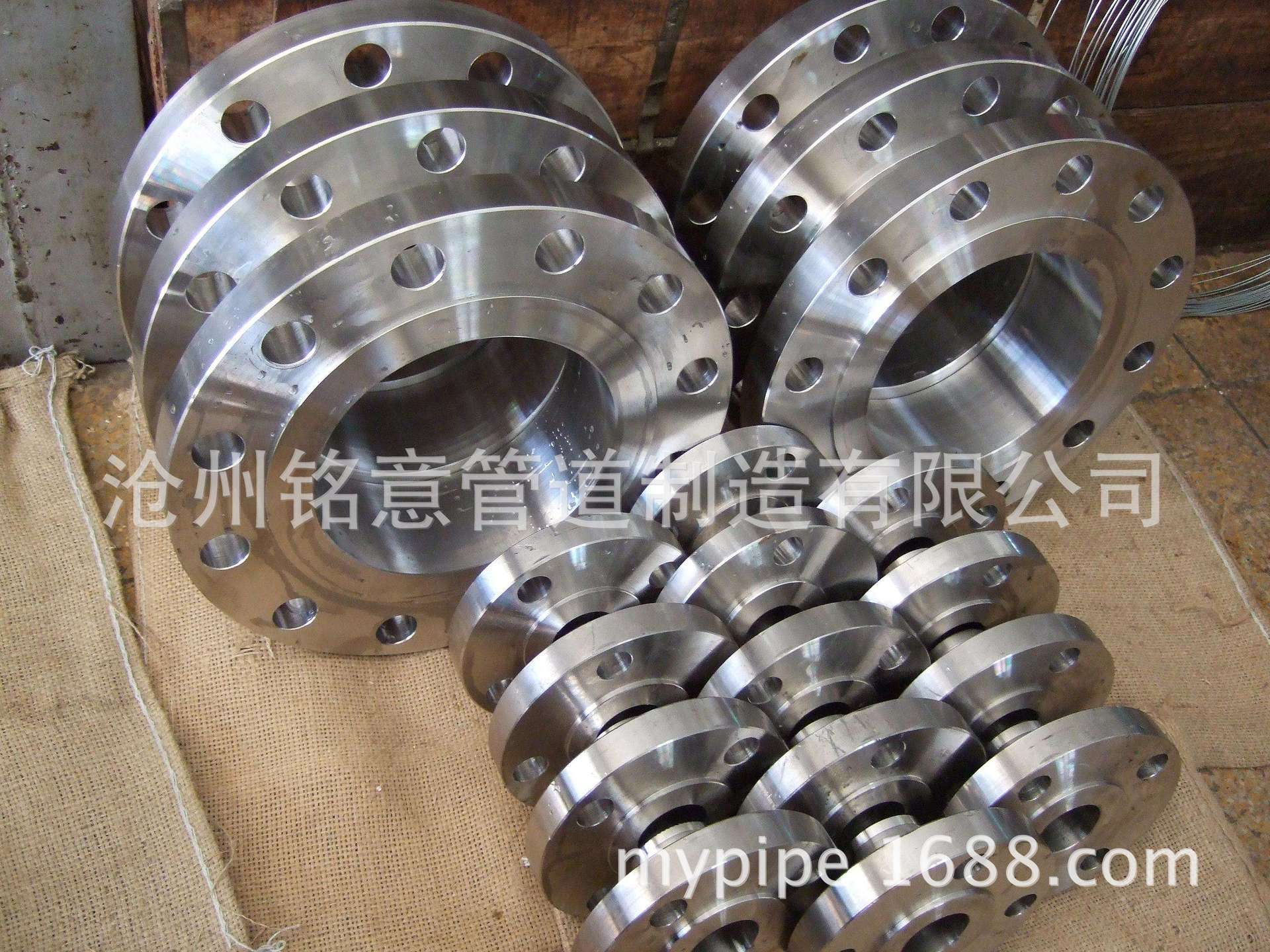 州铭意管道制造有限公司生产的法兰执行美标ANSL、德标DIN、意标UNI、日标JIS、英标BS等标准。主要产品有高颈法兰、搭接法兰、滑接法兰、滑套法兰、承插法兰、螺纹法兰、盲板法兰、平板法兰等产品。采用PC数控碾环机生产法兰盘和环形锻件是一项突破性的工艺改进。现已开发并大量生产出60万超临界火电机组P91主蒸汽、WB36主给水三逼、弯头压力达34MPa,以及材质有20G、16Mn、12CrIMoV、15CrMo、1Cr5Mo、ICr9MoA335 P5/P9/P1I/Pl2/P22/P91/P92、WB36 1OCrM0910、OCrl8Ni9.、1Cr18Ni9、1Cr18N19T1等管件产品。