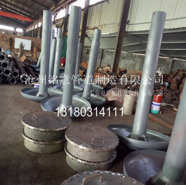 沧州铭意管道制造公司生产弯管型通气管、罩型通气管、喇叭口、吸水喇叭口、吸水喇叭口支架、钢制锥型排水漏斗、地漏、清扫口、防水套管;单级节流孔板、给水泵再循环多级节流装置、节流杆、水流指示器;三向位移指示器、双向位移指示器;排水漏斗、带盖的排水漏斗、方圆型排水漏斗;蒸气管道蠕涨测点、蒸气管道自动对心蠕涨测点;给水泵入口滤网、给水泵进口滤网;厂家生产A型通风帽05S804-177标准图集,串连阀中间垫圈、疏水盘、阀门传动装置手轮链接;圆风门、方风门、防爆门、电动风门、圆型焊制人孔、圆型保温人孔、矩型人孔、矩型保温人孔、烟道除灰孔、人孔(HG21514-21535);流量测量孔板、流量测量噴嘴、风帽、防雨帽、接管座,铭意GD87版、GD2000版管道杂项系列 蒸汽管道蠕胀测点 自动对心蠕胀测点水流指示器,三向位移指示器,高温节流杆 节流孔板,吸水喇叭管 疏水盘等产品。?6?7
