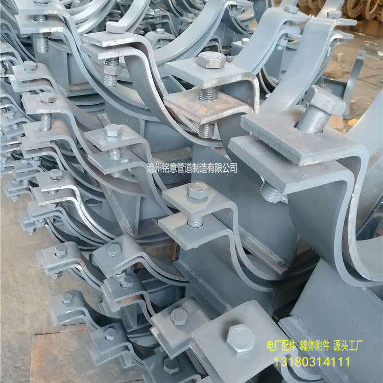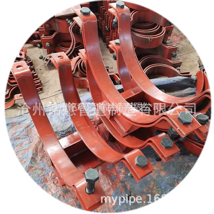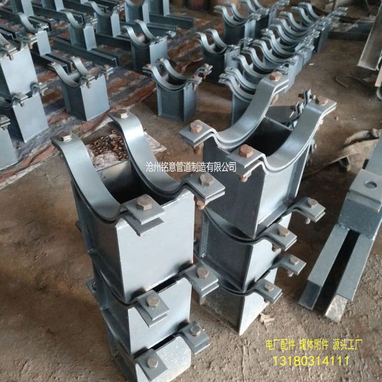 管夹固定支座主要用于固定管道,承受管道压力,管道位移,缓冲管道振动等方面,广泛应用于电力,冶金,石油,化工等行业的管道或设备以及桥梁,建筑和大型设备等减振场合。使用时直接卡管道,两端用螺栓螺母固定,具体使用方法请咨询 沧州铭意管道制造有限公司。