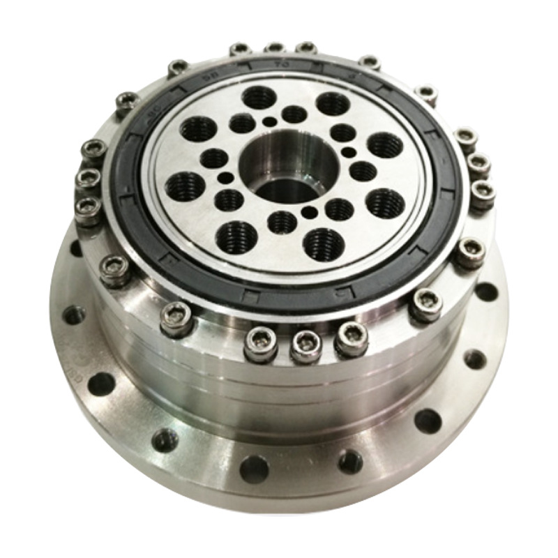 产品构造:减速器由输出法兰、支撑法兰、摆线齿轮、曲柄轴、行星齿轮、针轮、输入齿轮(选件)、主轴承、圆锥滚子轴承、滚针轴承连保持架、油封等组成。