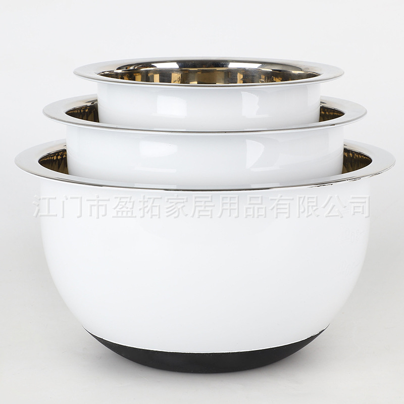 304不锈钢打蛋碗搅拌碗 3件套圆形硅胶底防滑打蛋器