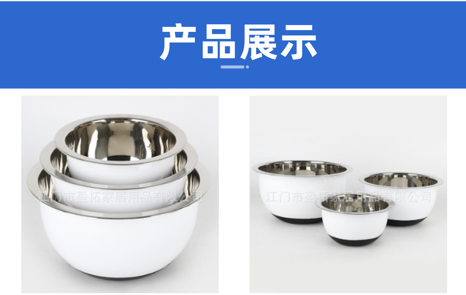 首页 > 供应产品 > 304不锈钢打蛋碗搅拌碗 3件套圆形硅胶底防滑打蛋器