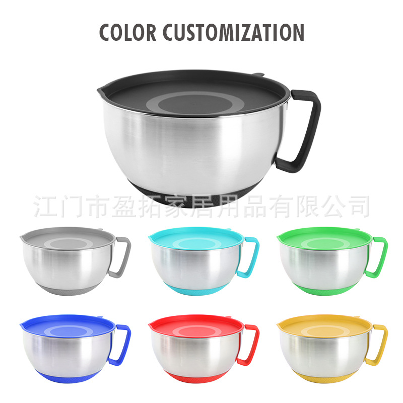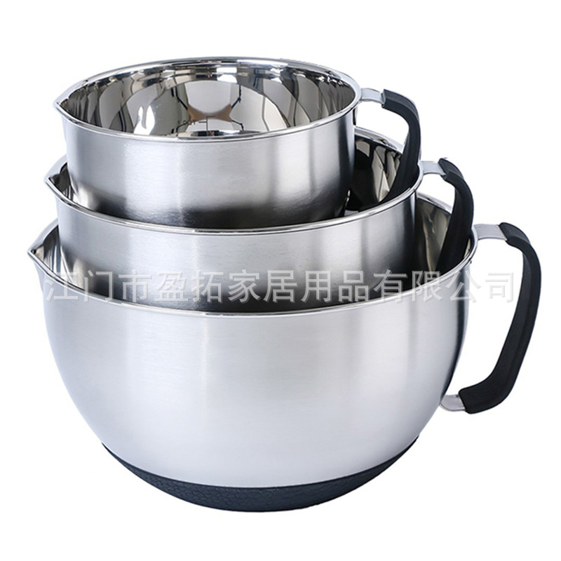 新款304不锈钢打蛋碗打蛋盘 家用厨房沙拉碗带把手打蛋器防滑胶底