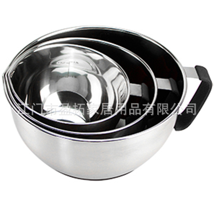 首页 > 供应产品 > 新款304不锈钢打蛋碗打蛋盘 家用厨房沙拉碗带把手打蛋器防滑胶底