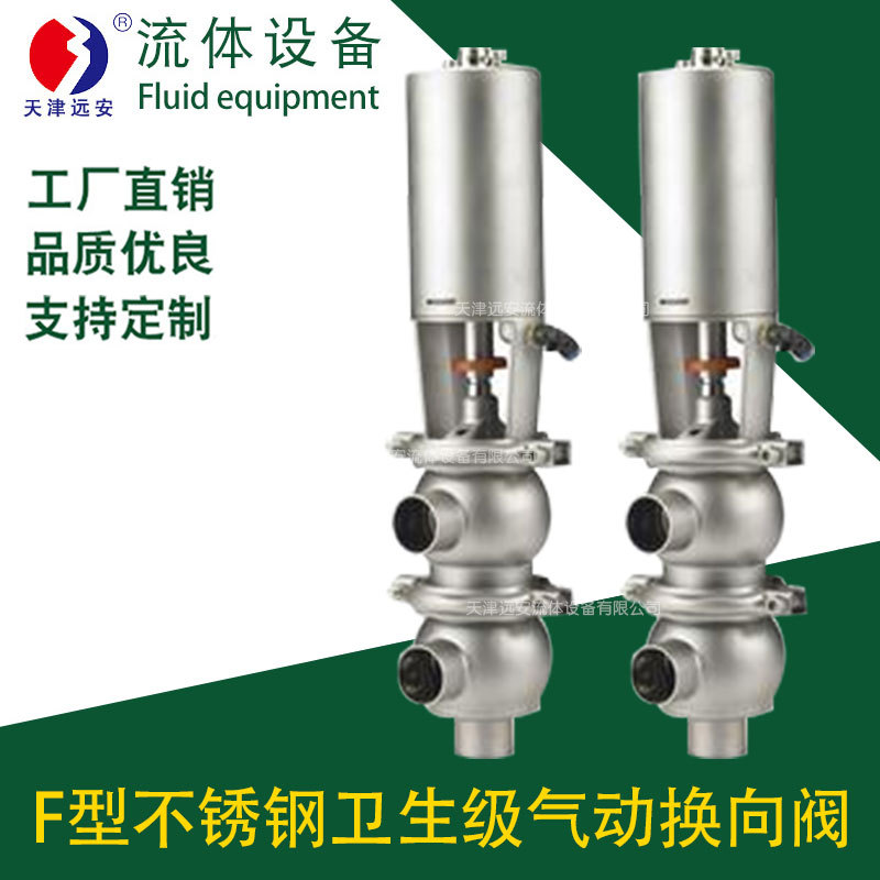 天津远安F型不锈钢卫生级气动换向阀 卫生级换向截止阀