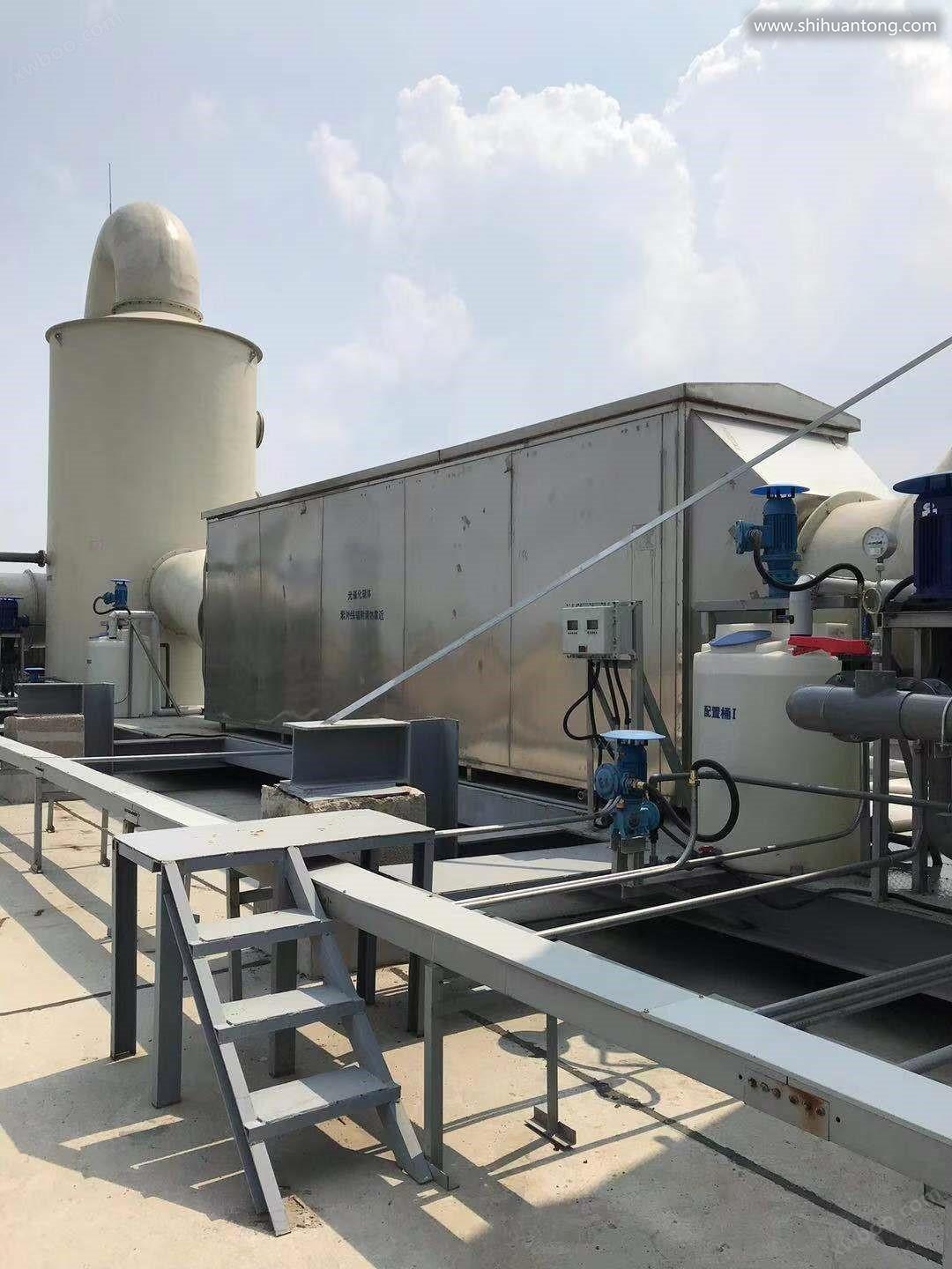 当含有气、液、固三项混合的有毒、有害、有恶臭的废气经收集管道导入本系统后通过培养生长在生物填料上的高效微生物菌株形成的生物膜来净化和降解废气中的污染物。