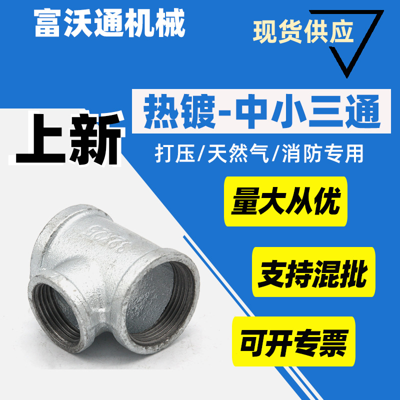 变径三通水暖热镀锌管件 工程热镀锌管件 水暖消防配件中小三通