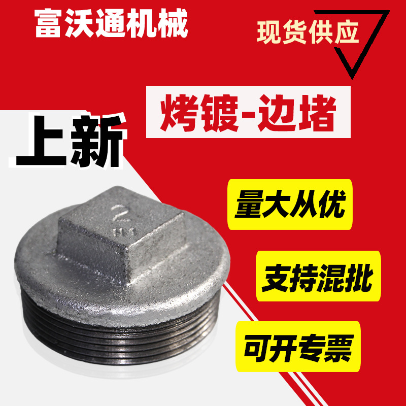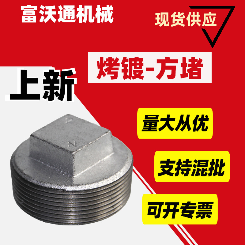 玛钢堵头 镀锌玛钢外丝牙下水管道铁方堵 工艺品管件铁堵头4分6分