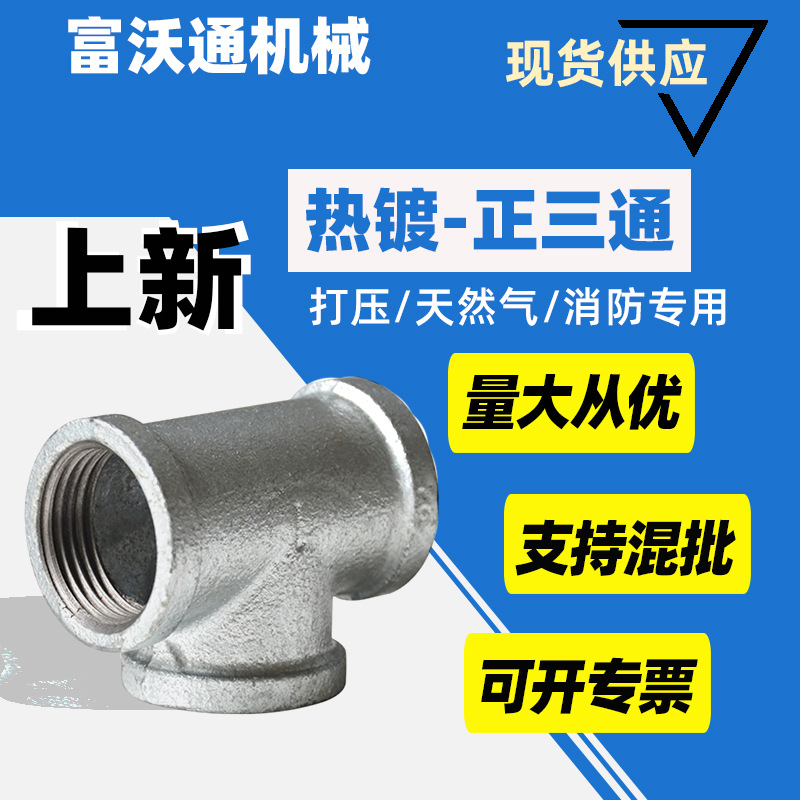 热镀玛钢管件三通 工程用玛钢接头厂家铁三通水暖消防用1寸正三通