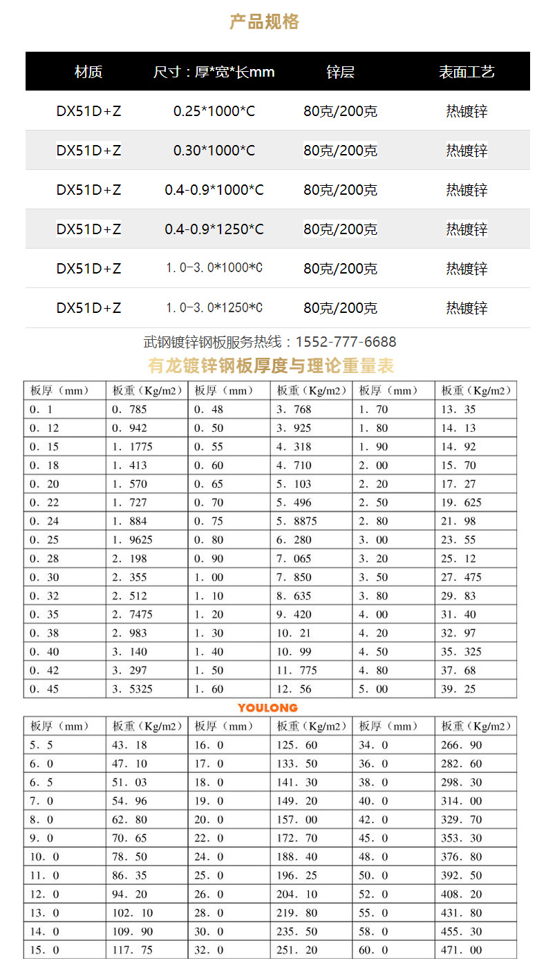 镀锌板技术指标、性能、规格一览表
