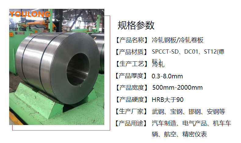冷轧板带用途很广,如汽车制造、电气产品、机车车辆、航空、精密仪表、食品罐头等。冷轧薄钢板是普通碳素结构钢冷轧板的简称,也称冷轧板,俗称冷板,有时会被误写成冷扎板。冷板是由普通碳素结构钢热轧钢带,经过进一步冷轧制成厚度小于4mm的钢板。由于在常温下轧制,不产生氧化铁皮,因此,冷板表面质量好,尺寸精度高,再加之退火处理,其机械性能和工艺性能都优于热轧薄钢板,在许多领域里,特别是家电制造领域,已逐渐用它取代热轧薄钢板。