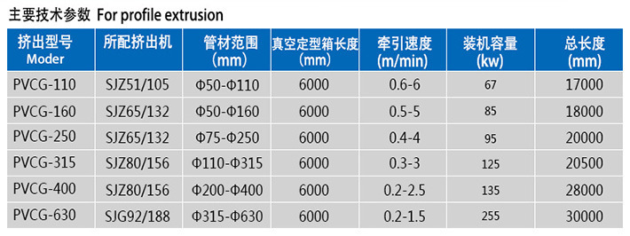 PVC管材生产线主要用于生产农用给排水、建筑给排水、建筑穿线管、线缆铺设等方面的各种管径、壁厚的塑料PVC管材,该机给由锥形双螺杆挤出机、真空定型箱、牵引机、切割机、翻料架或扩口机等到组成。螺杆挤出机及牵引机采用交流变频调速装置,真空泵及牵引电机均采用优质产品。牵引有二爪、三爪、四爪、六爪等牵引机方式。可选用锯片或行星切割形式,另可带计长及增厚装置,机组性能可靠、生产效率高。本公司可根据客户的要求,配置专用装置生产螺旋消音管和芯层发泡管机组。