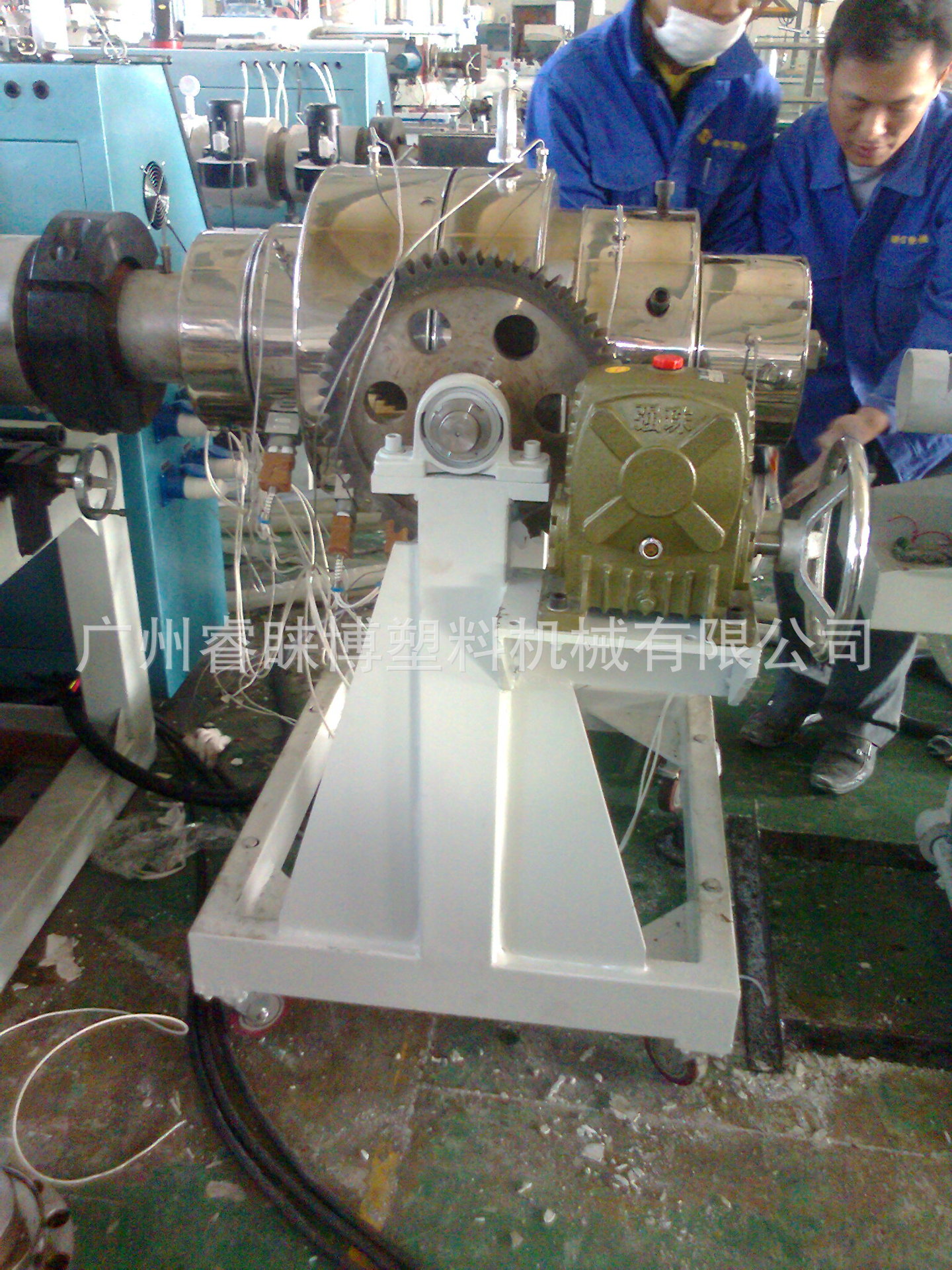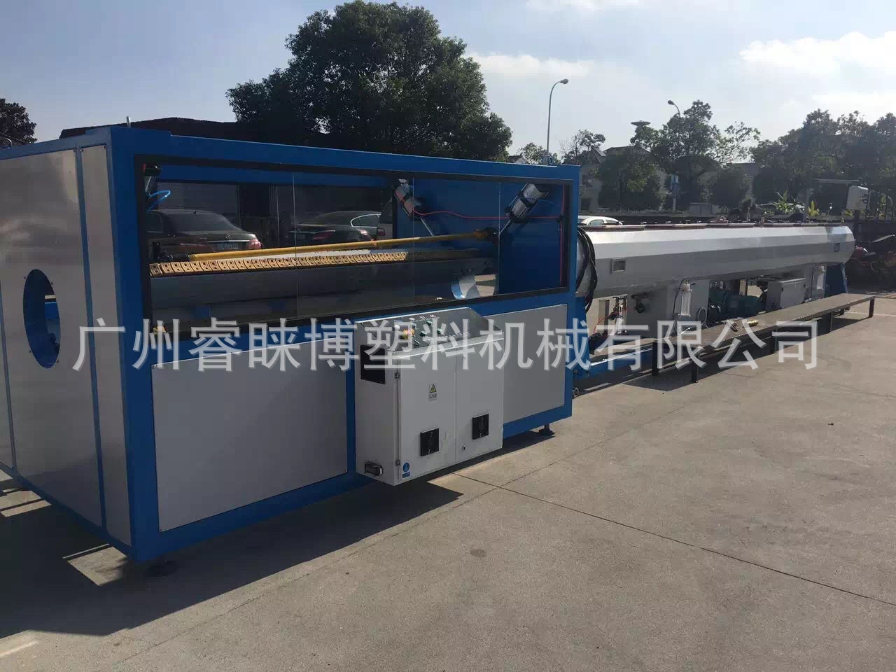 (5)PVC塑料管材挤出生产线牵引机用于连续、自动地将已冷却变硬的管材从机头处引出来,变频调速。