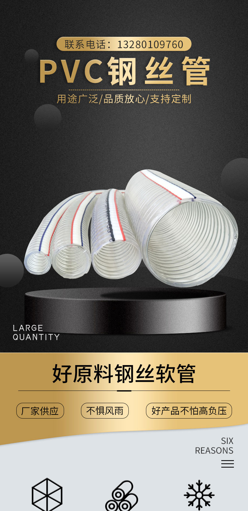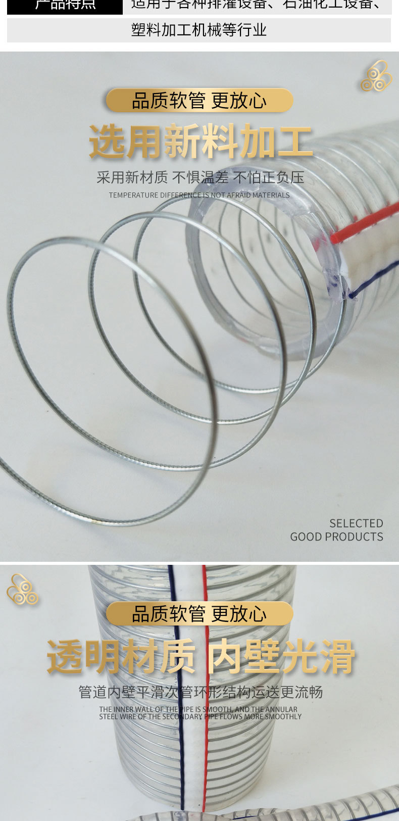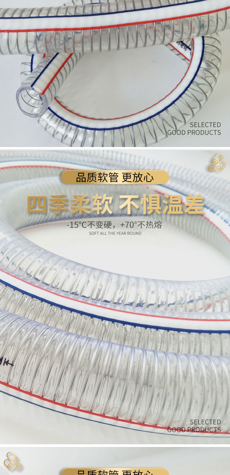 PVC透明钢丝管螺旋增强钢丝软管 输水排水用塑料软管32mm38mm50mm