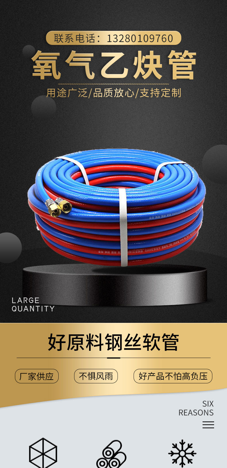 PVC三胶两线红蓝气压软管风炮管空压机管内径6mm13mm16mm气动高压