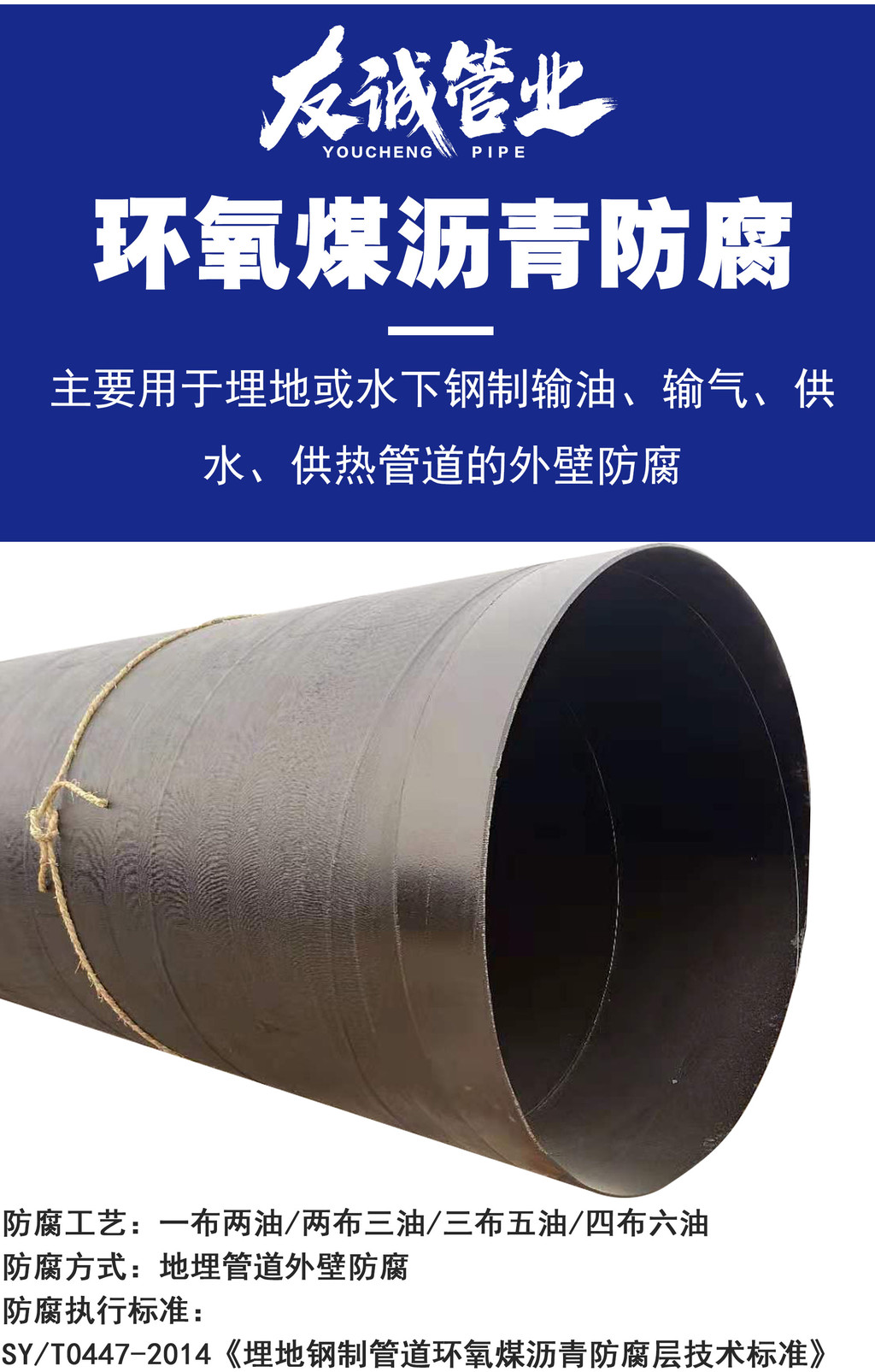 友诚厂家排污水饮用水农田灌溉用两布三油_三布四油_三布五油_四布六油防腐螺旋钢管 排污水两布三油防腐螺旋_