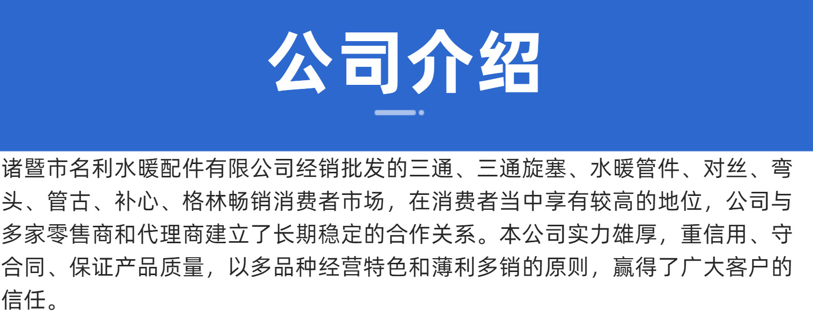 企业档案诸暨市名利水暖配件有限公司普通会员 绍兴 原厂/生产商/品牌方 |