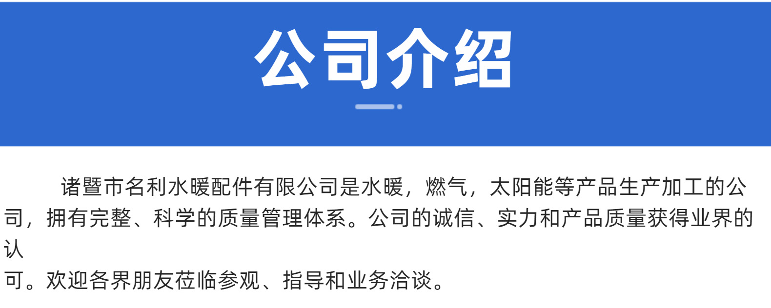 访问量:2300诸暨市名利水暖配件有限公司 地址:浙江绍兴诸暨市店口镇金湖社区小山坞自然村882号技术支持:世环通