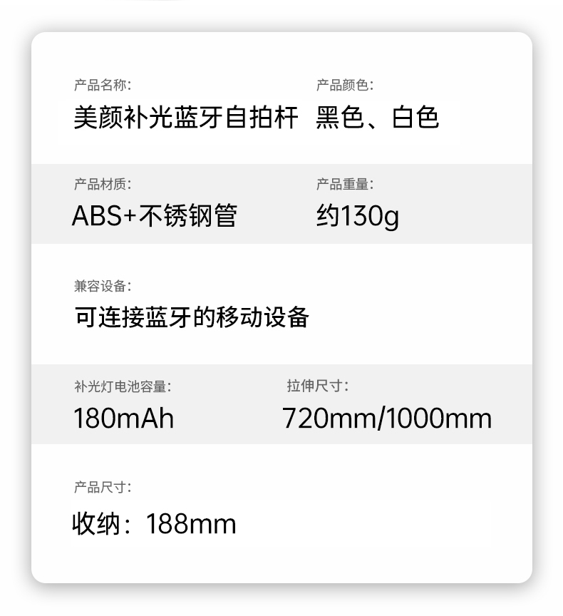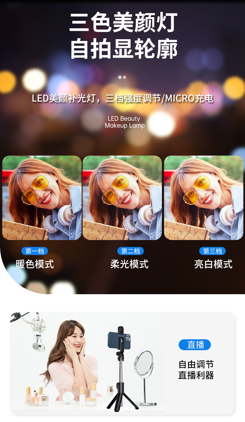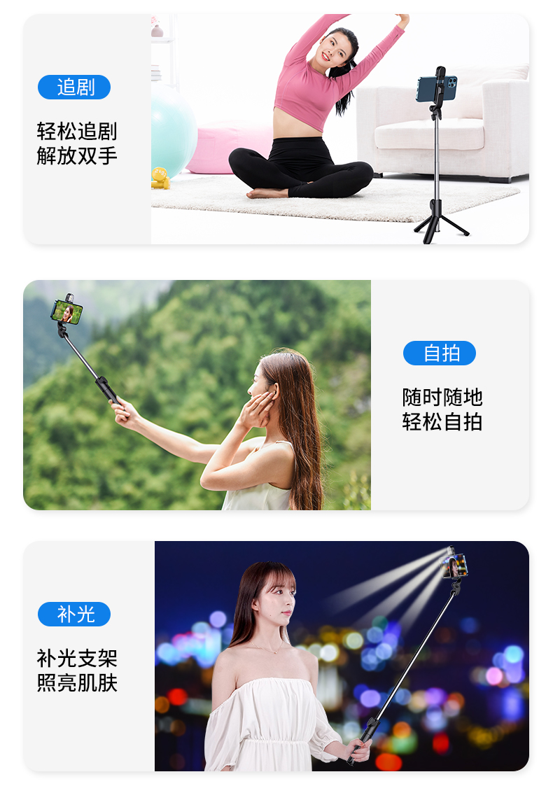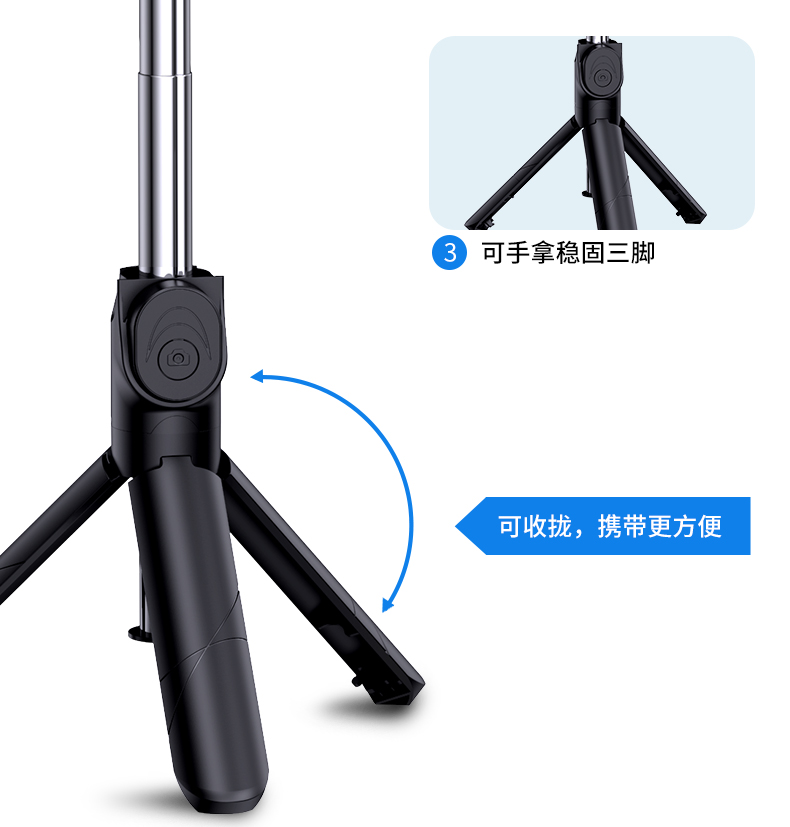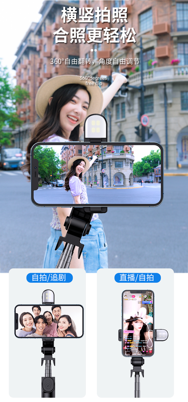 配置:三脚架+蓝牙自拍器手持拉伸最大长度:680mm