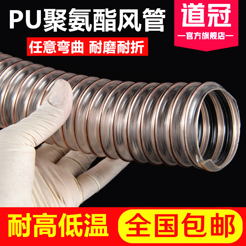 PU聚氨酯风管 镀铜钢丝软管 透明pu吸尘木屑伸缩通风管壁厚0.63mm