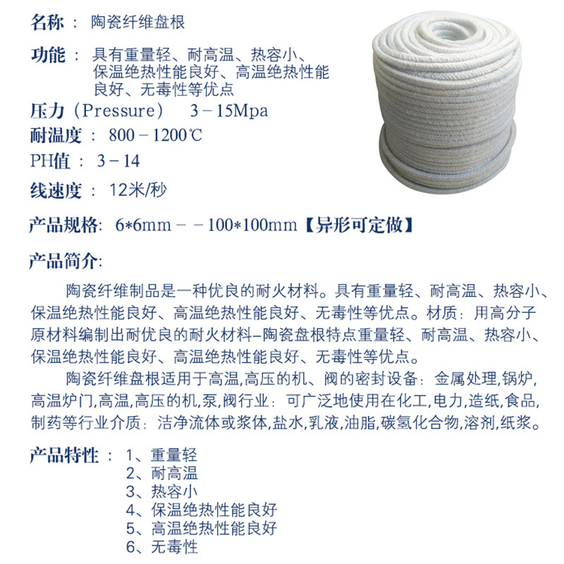 耐火陶瓷纤维盘根密封填料窑炉密封条无石棉硅酸铝纤维方绳耐高温