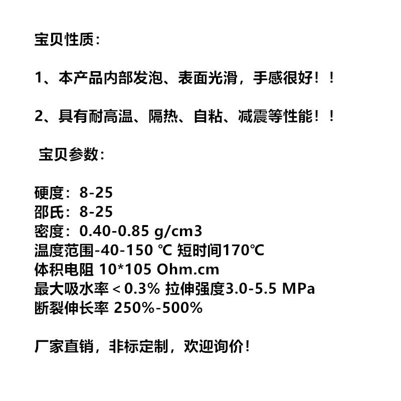 EPDM三元乙丙发泡板橡胶带胶海绵板减震板隔音板1/2/3/5/8/10/15