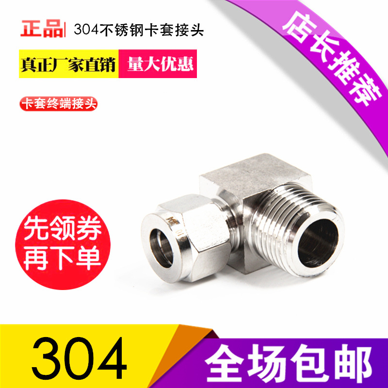 304不锈钢卡套弯头 90度直角弯通终端双卡套接头ZG/RC/PT6 8 10mm