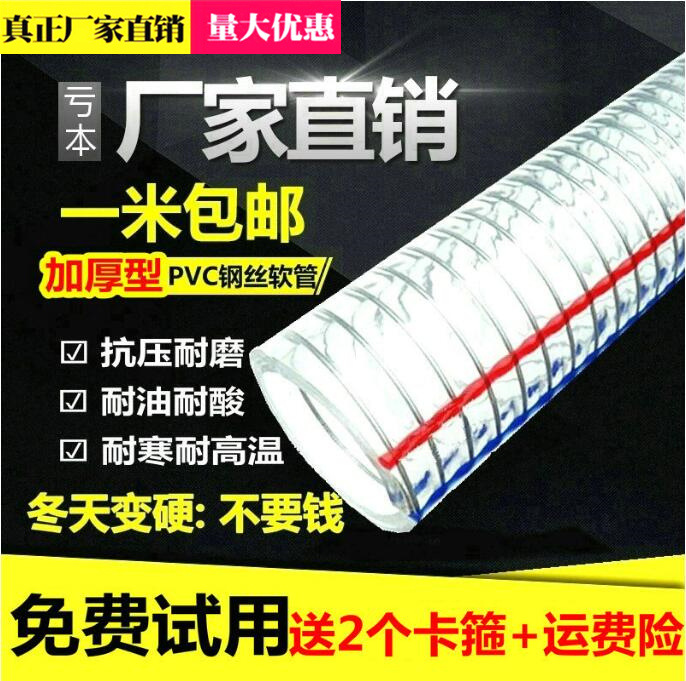 pvc带钢丝软管透明管耐高温耐腐水管50mm加厚25/32油管1/2/3/4/寸