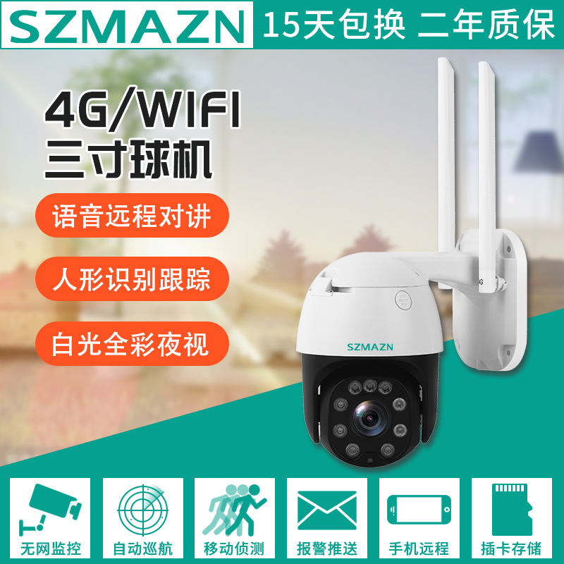 有电无网4G3寸全彩声光报警智能球机WiFi无线手机远程红外摄像头