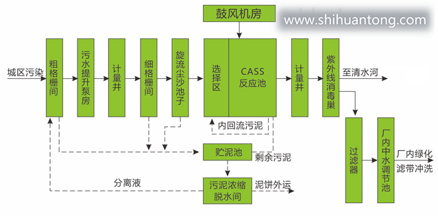 CASS工艺是在SBR的基础上发展起来的,即在SBR池内进水端增加了一个生物选择器,实现了连续进水(沉淀期、排水期仍连续进水),间歇排水。