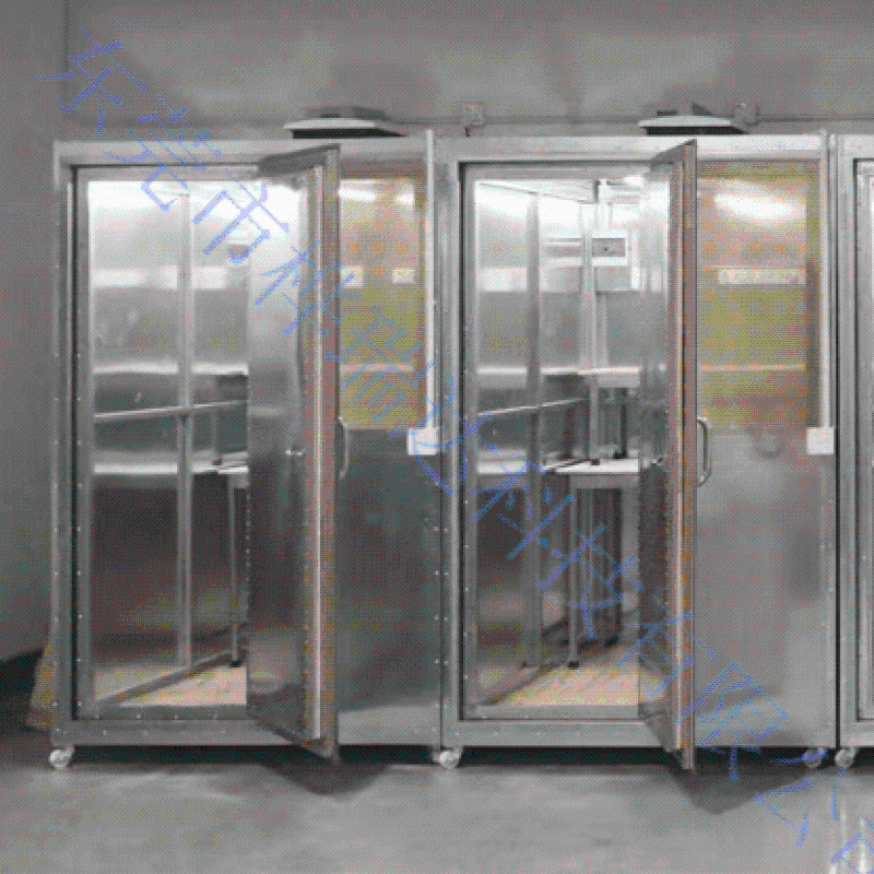 以免碰穿,起到保护作用,同时网的部份也可以用来做透视窗,网与镀锌板拼装;屏蔽房顶部安装30*30金铃排气扇;地面用1.5cm厚夹板作地板,贴30"*30"阻燃地板胶。屏蔽房底部安装可移动轮子,带刹车;安装方便,可移动,可拆迁,双层结构