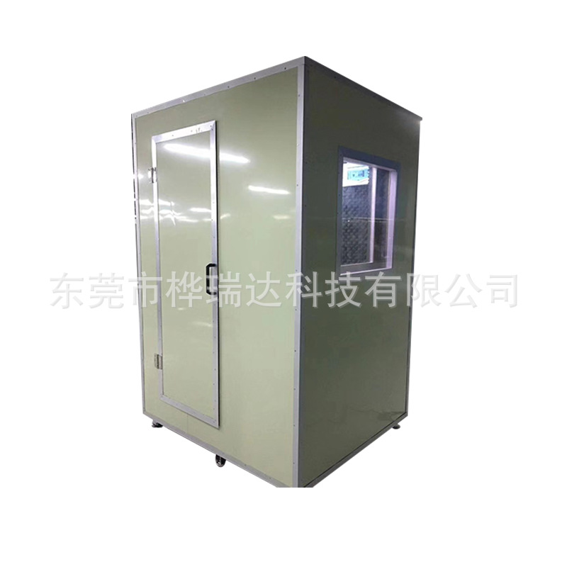 配置:隔音门一扇(一个向外)、换气通道、可移动式轮架、节能灯、工作台、六位万用插座等。
