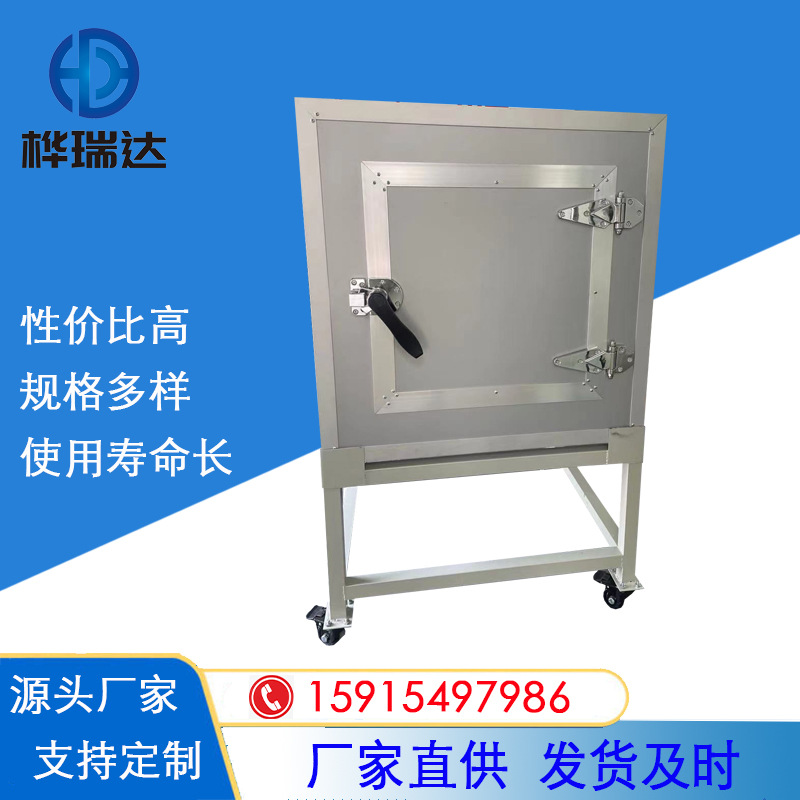 b.隔音箱底可配可移动脚轮带不锈钢支架,另配四个减振器,以减少外界振动声源对隔音箱的影响。