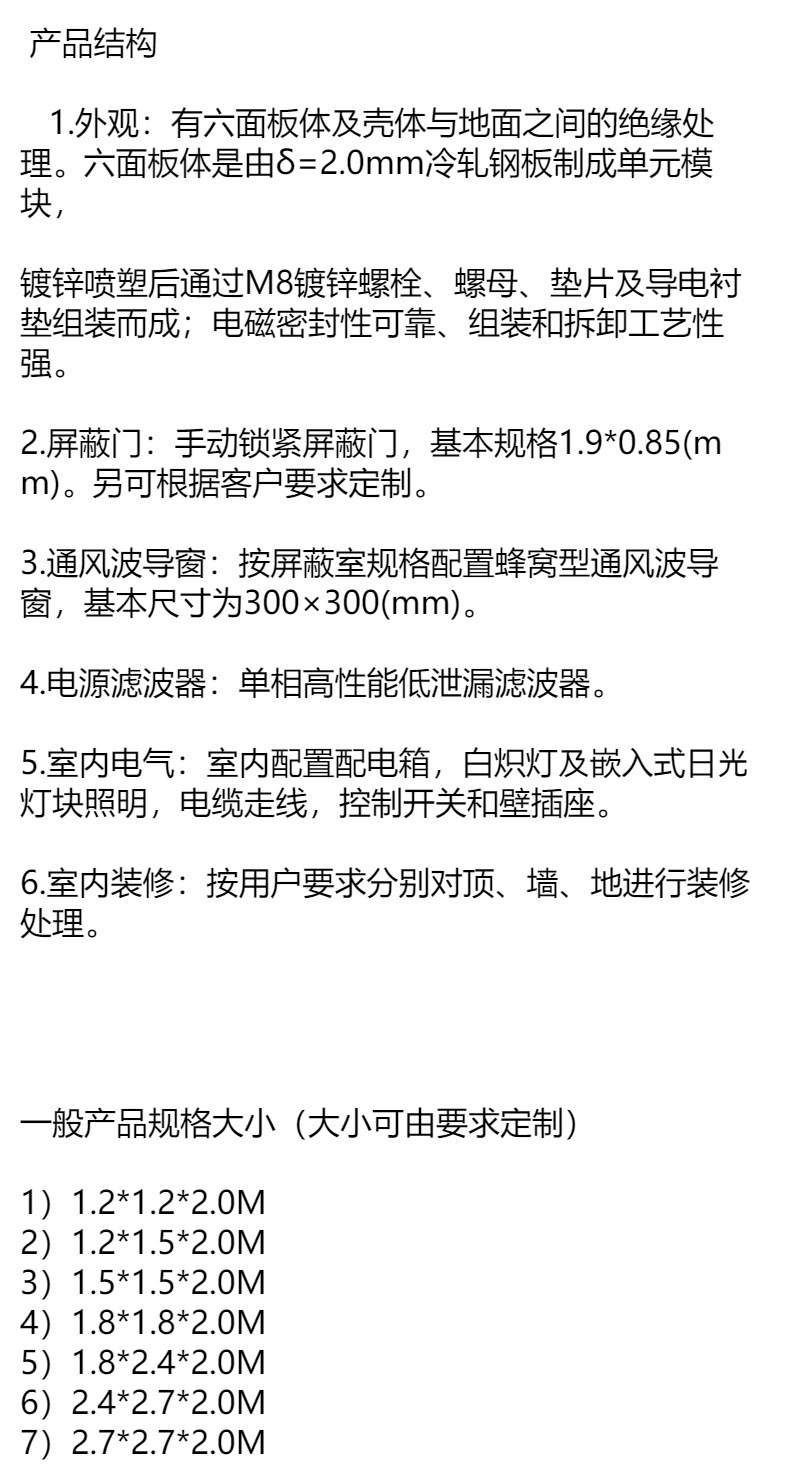 产品尺寸3000mm*2000mm*2200mm
