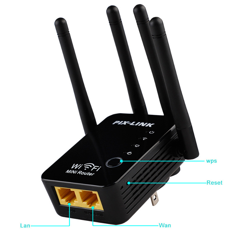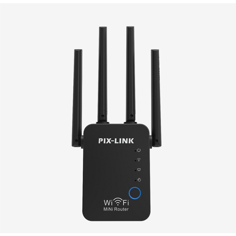 PIX-LINK LV-WR162019新品 全黑色300M 4天线WIFI信号放大器无线中继器/路由工厂直销