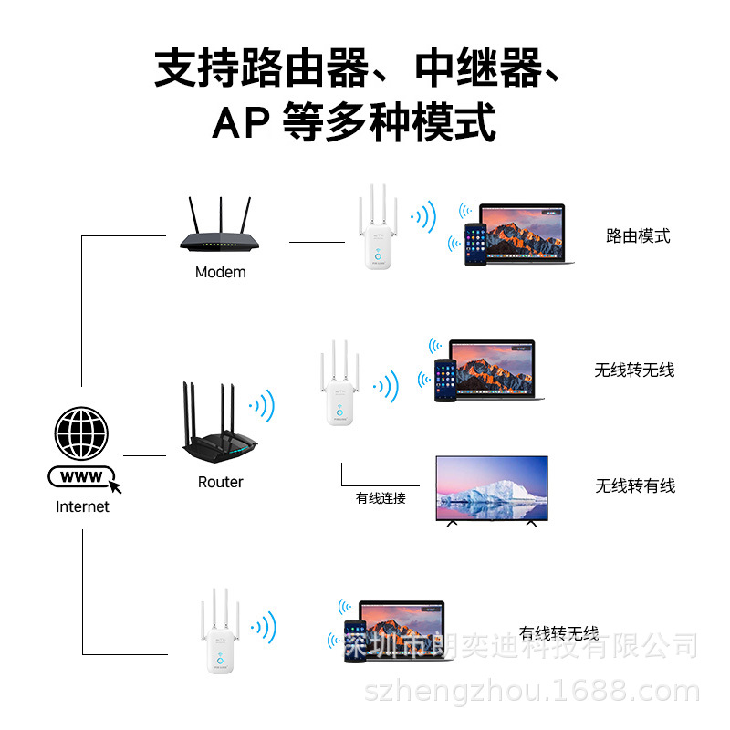 支持中继模式,AP模式,WPS加密