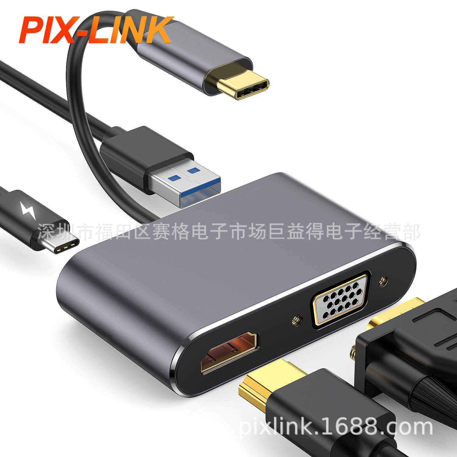 type-c扩展坞四合一集线器USB3.0扩展器HDM VGA转接换器4K高清PD